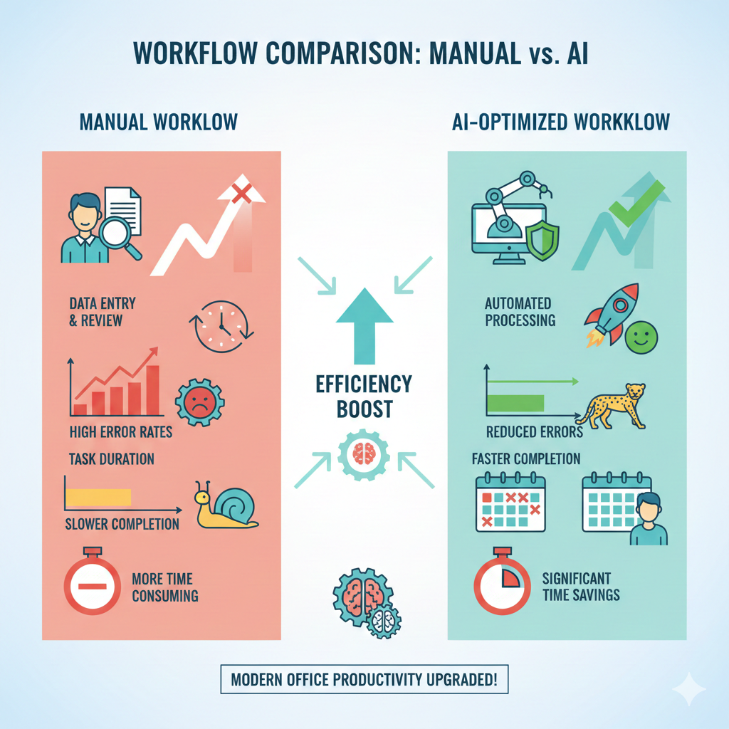 In this guide, you will learn how to replicate this success: how to use AI to optimize workflows, which tools to start with (including free options), and how to measure results. Whether you work in marketing, sales, manufacturing, finance, or logistics, this guide provides actionable strategies to save time, cut costs, and increase efficiency in 2026.